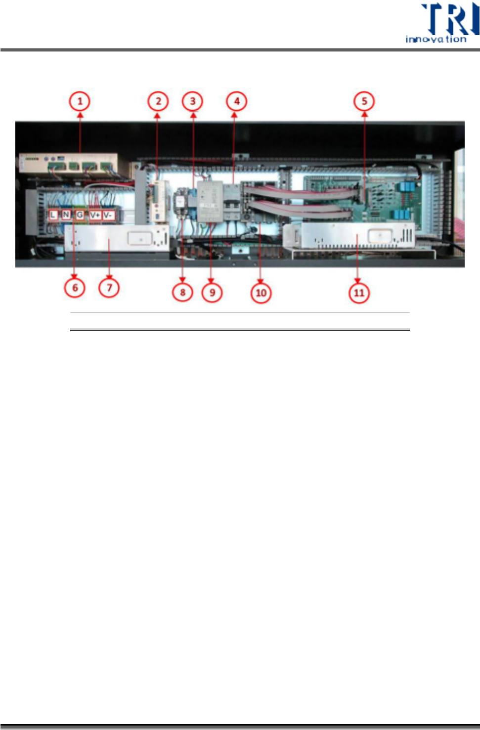 Test Research, Inc. 4.2.2 左電控盤配置圖 24: 左電控盤配置圖 圖 Conveyor 驅動 1) 自動板寬驅動 2) X-Ray 電源繼電器 3) 無熔絲斷路器 (NFB) 延長線 4) 模組板 5) 交流 & 直流電總線 (BUS) 6) X-Ray 電源 7) 相機電源繼電器 (Relay) 8) 系統電源 9) VPLC 10) 相機電源 11) TR7600SIII 系列 使用手冊 – 硬體 …