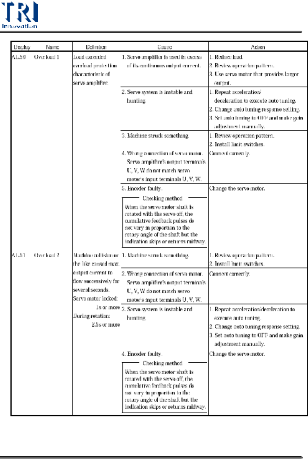 表 3: 沿 X 及 U 軸的動作錯誤代碼