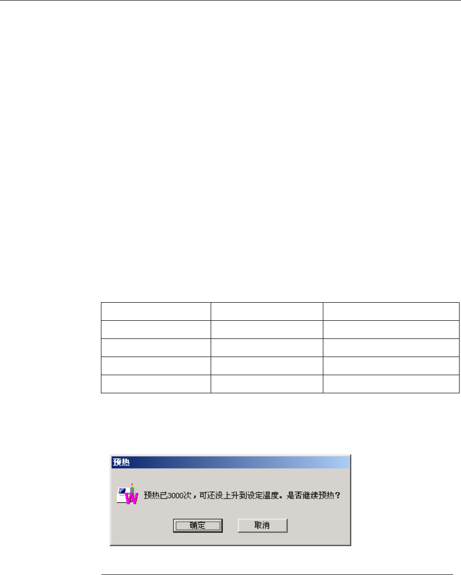 已进行了 3000 次预热操作而达不到所设置温度的情况下,显示询问框,问是否要持