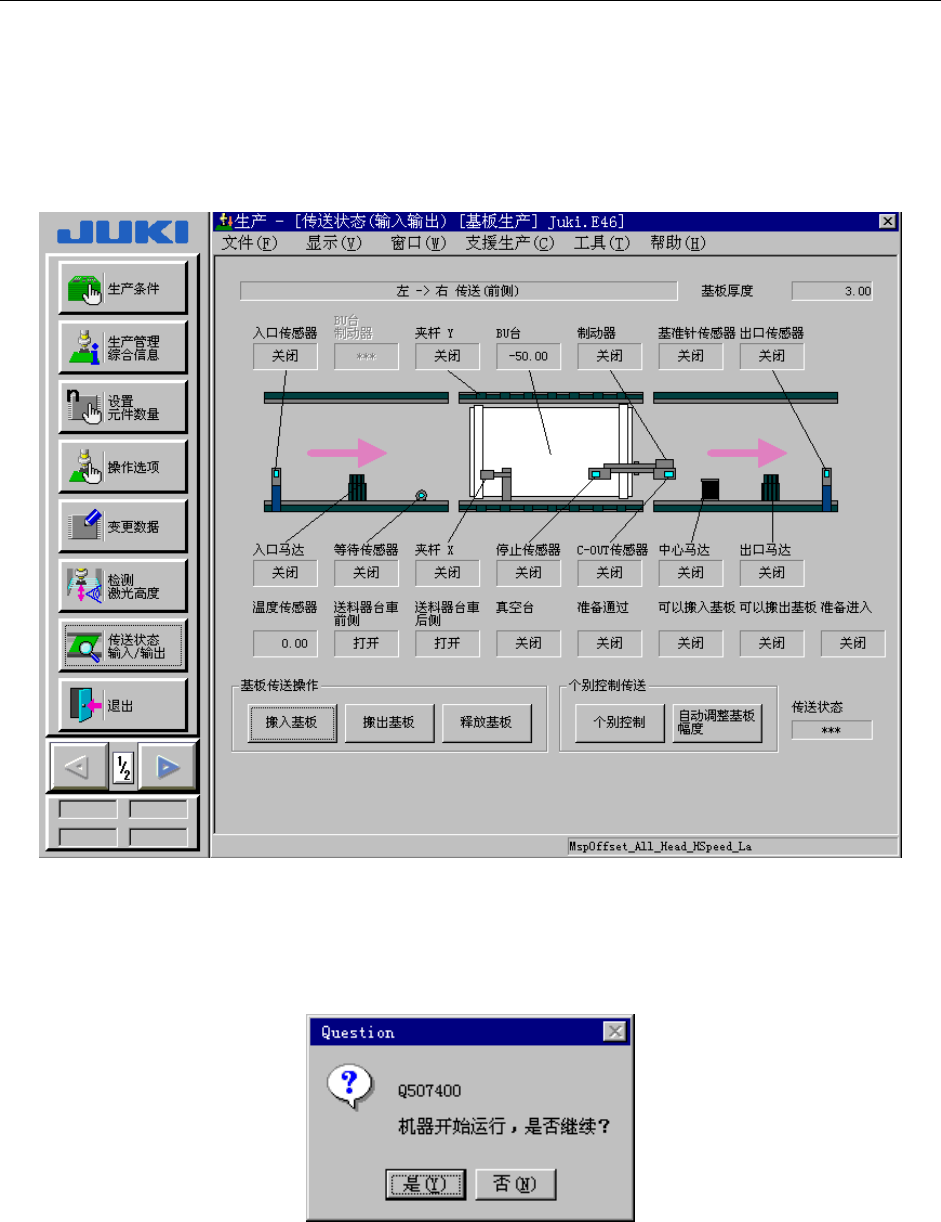 在生产进行中,不显示传送方向、基板厚度、传送运行命令和传送状态。