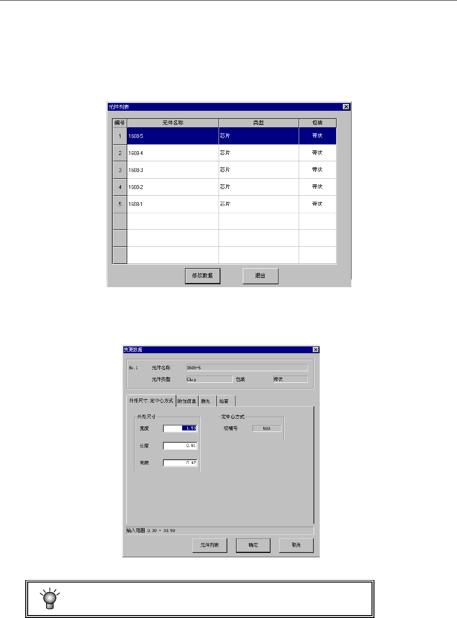 元件数据的内容中,送料器种类等部分信息不能变更。