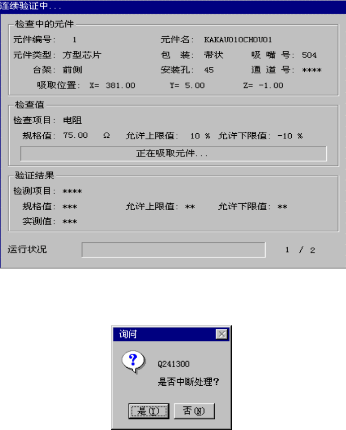连续检查中将显示所检查元件的内容,并显示依次检查的进展情况和检查结果。