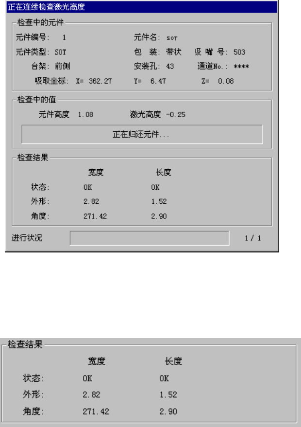 连续检查中显示进行连续检查的元件内容/吸取位置/激光高度,显示依次检查的处理内容。