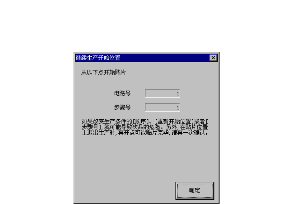 开始下一次生产时,将确认是否从上述位置开始生产。但如果已经通过程序编辑编辑了生产