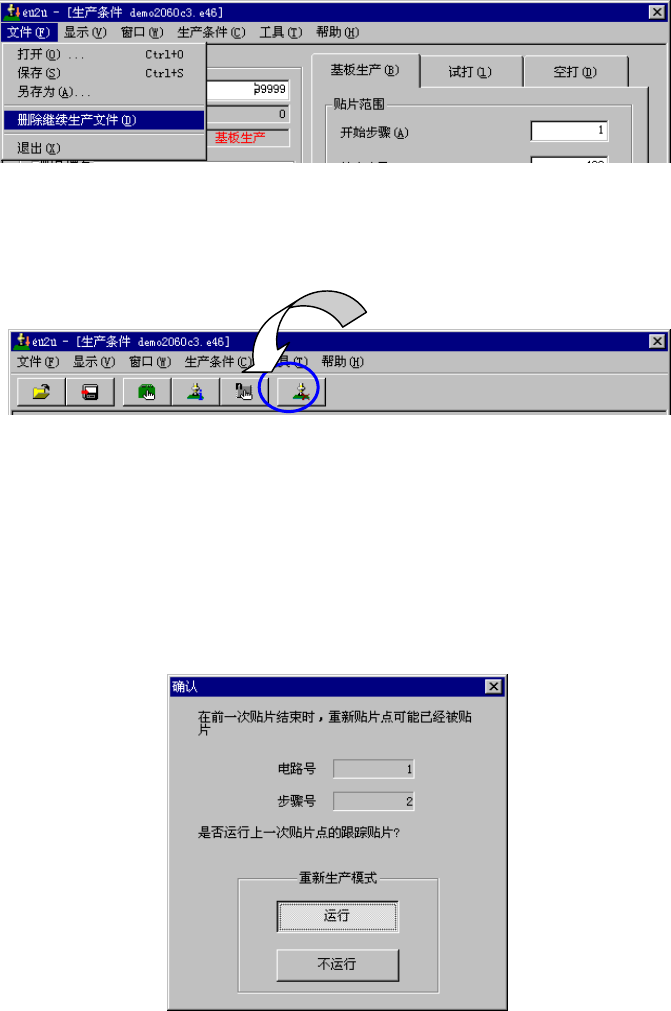 当存在继续生产数据时,菜单栏中的“文件”/“删除继续生产文件”与工具栏中的按钮将