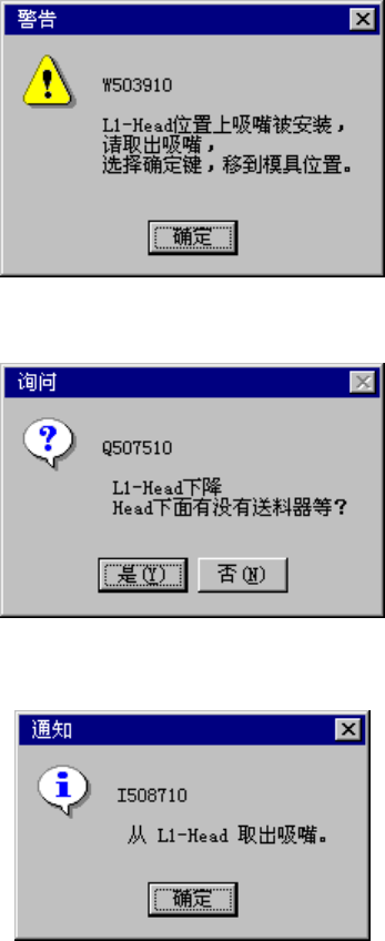 如果选择手动返还吸嘴,则指示将贴片头移动到吸嘴拆卸位置,确认后,降下贴片头,手动