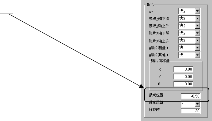 ① 抓取位置: “Y”项,输入元件中心点与吸嘴固定侧手臂中心点的偏移值(见图 1