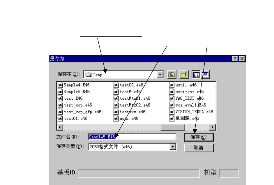 第1部 基本篇 第4章 生产程序制作 4-121 4-4-2-2 文件保存 新建程序时,从优化条件设定画面中单 击“执行”按钮,显示“另存为”画面。请指定文件 名并进行保存。 ① 指定保存目的地“驱动器”和“目录” 。 ②输入文件名 ,单击「保存」 。 图 4.4.2.2-1