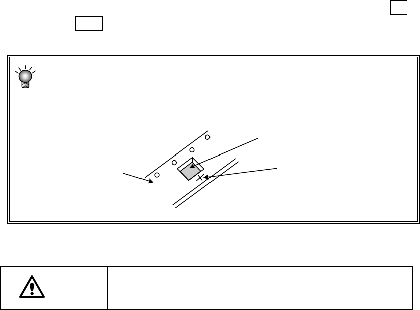 此时,请如下图所示将激光移动到带料托架上,代用该点进行 Z 轴的示教。
