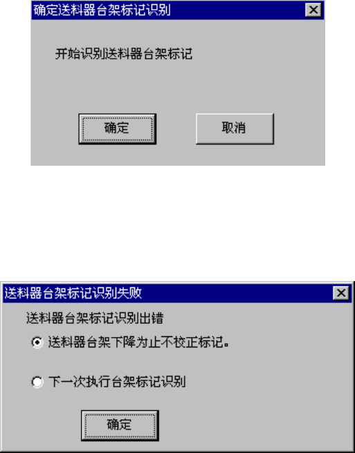 在进行时,若送料器台标记识别失败(错误),显示如下的对话框。此时,识别结果不会储