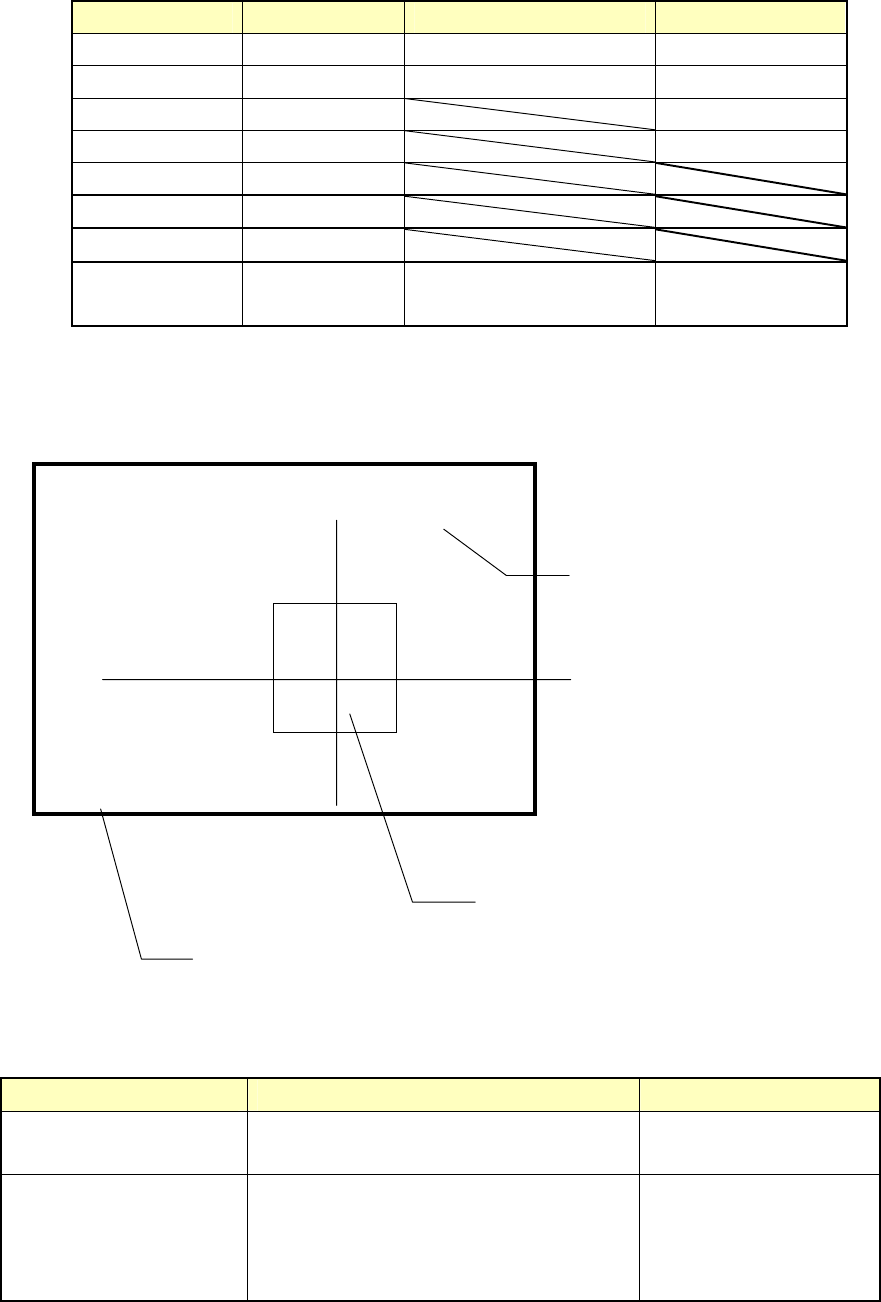 如下表所示,根据元件尺寸,显示在监视器中的元件中心及四角的显示有所不同。
