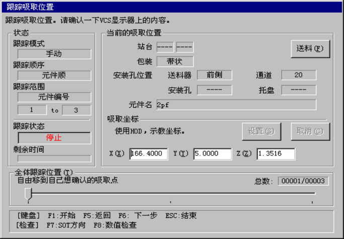 显示对从几号到几号的元件进行跟踪,或对哪个送料器台架进行跟踪。