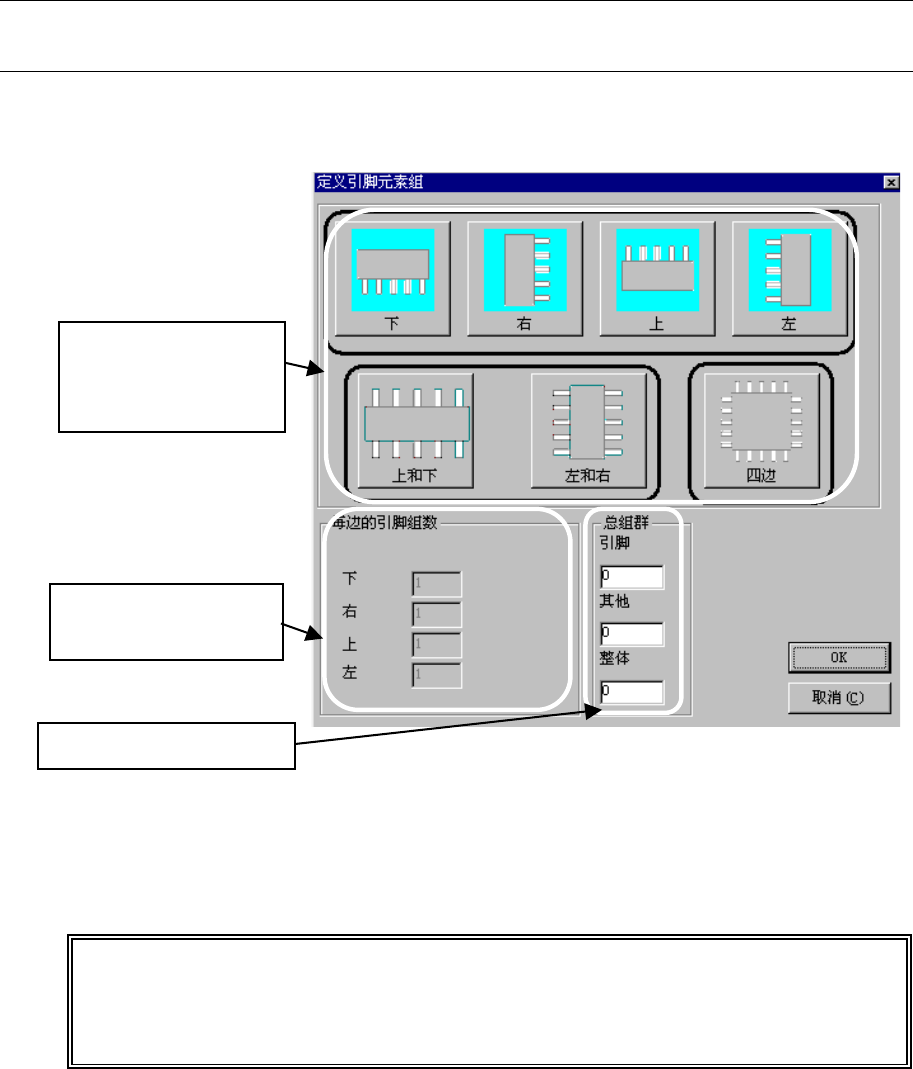指定与元件形状相同的模板后,在“各边的引脚组数”中输入元件组的数量。