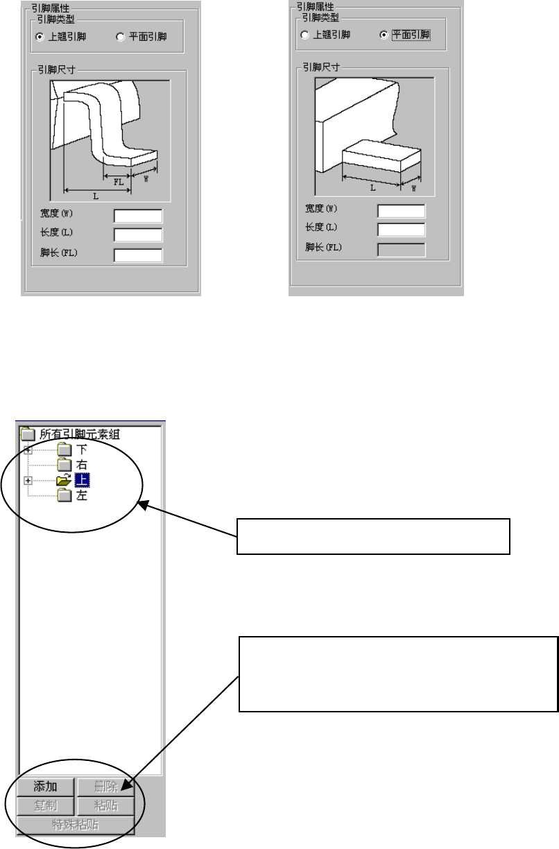 图 6-4-3-5 引脚特征(鸥翼形引脚) 图 6-4-3-6 引脚特征(平板引脚)