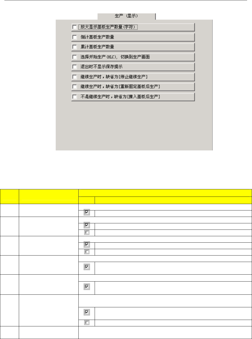 表 7-2-2 生产时显示选项设定项目的细节和内容