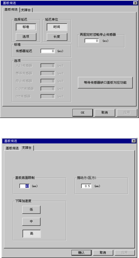 选择基板传送,则显示图8-4-10-7的基板传送设置画面。选择支撑台标签,则显示图