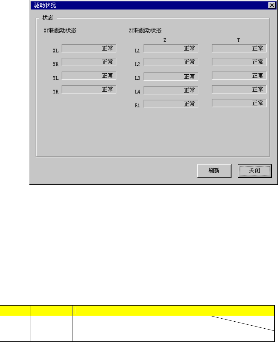 从菜单栏中选择“控制”/“其他”/“驱动状况(D)”,则显示如下的“驱动状况”画面。