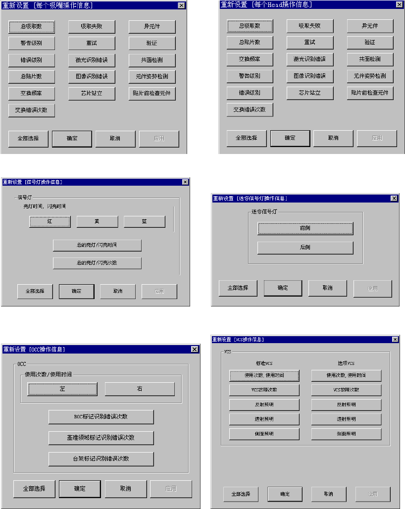 图 10-5-16-5 吸嘴作业信息重新设置画面 图 10-5-16-6 贴片头作业信息重新设置画面