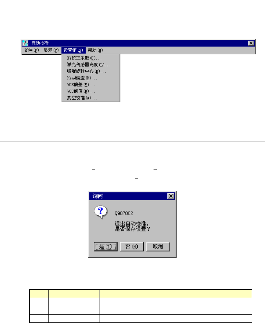 第2部 功能详细篇 第1 1章 自动校准 11-2 11-1-2 设置项目的选择 从下述菜单或画面左侧的命令按钮组中选择项目,则显示与各项目相对应的画面。 设置组 不能选择没有在MS参数的“选项”设置中选择的(未安装)组件。 图 11-1-3 设置组的项目 11-1-3 设置值的保存 各设置画面中都有“是”和“取消”按钮。 此时即使选择了“是”,也不会被保存设置值。 选择菜单栏的“文件(F )”/“退出应用程序(X )”或命令按…