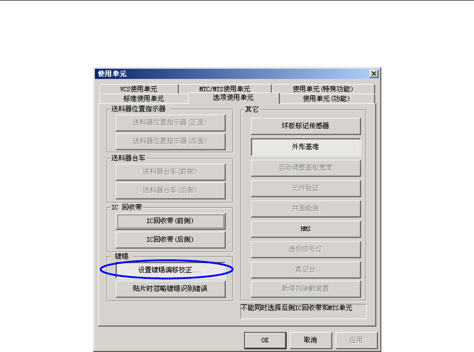 在设置画面上选择“设定组”-“使用单元”,设置使用/不使用镀锡偏移校正。
