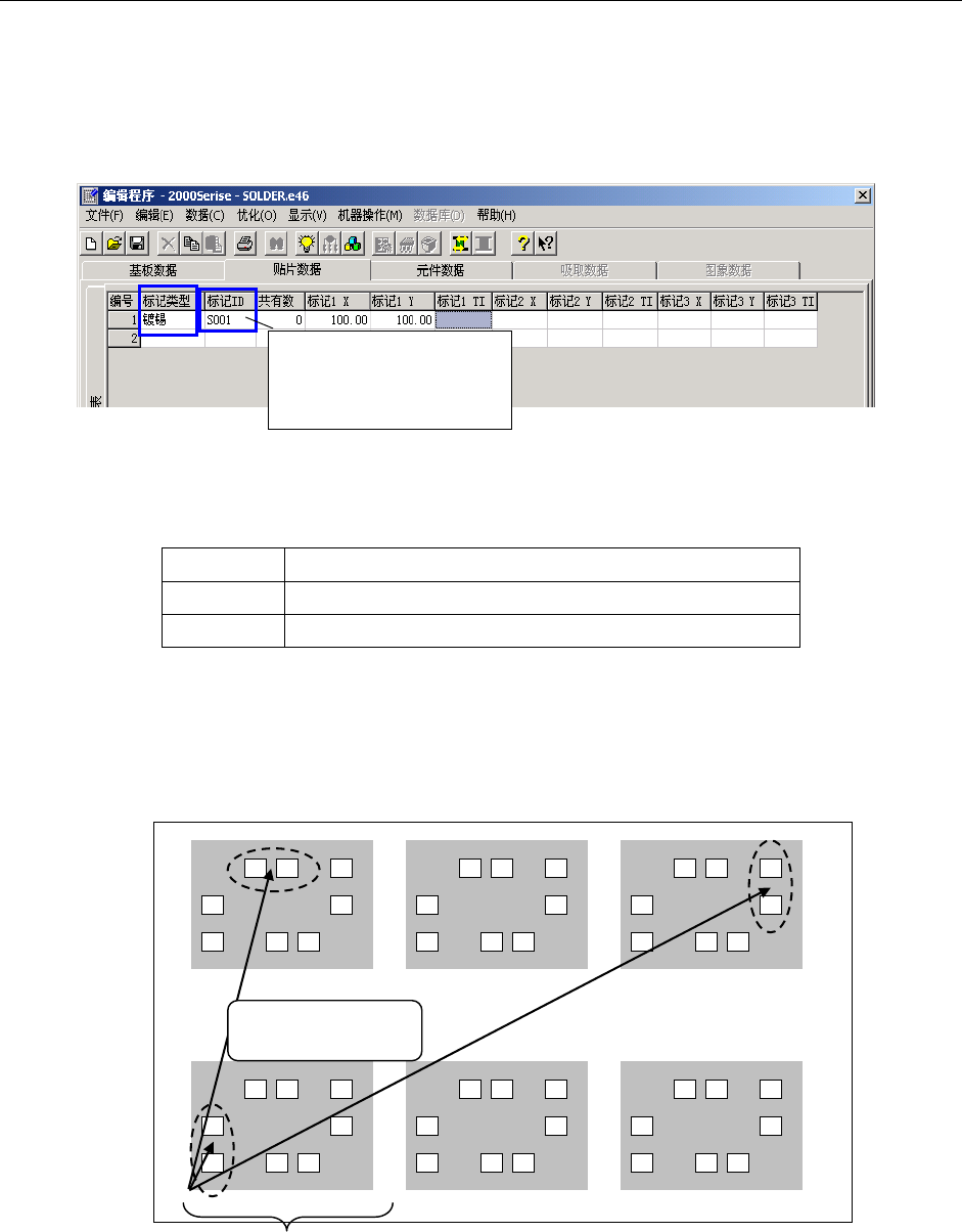 ③ 把上述①选择的贴片坐标,输入到标记坐标。