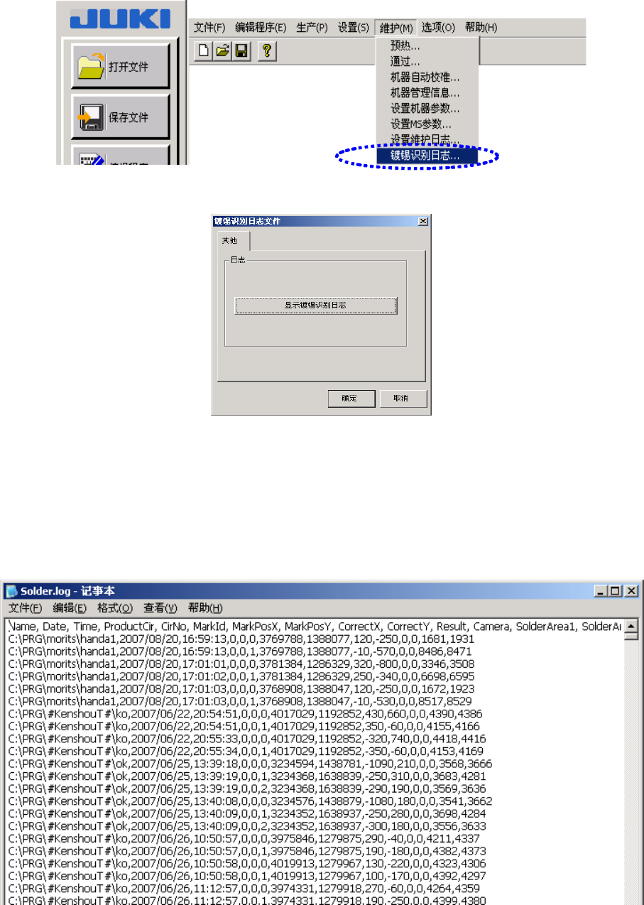 按下[显示镀锡识别日志]按钮,选择[确定]后,则日志信息以文本格式保存下来。