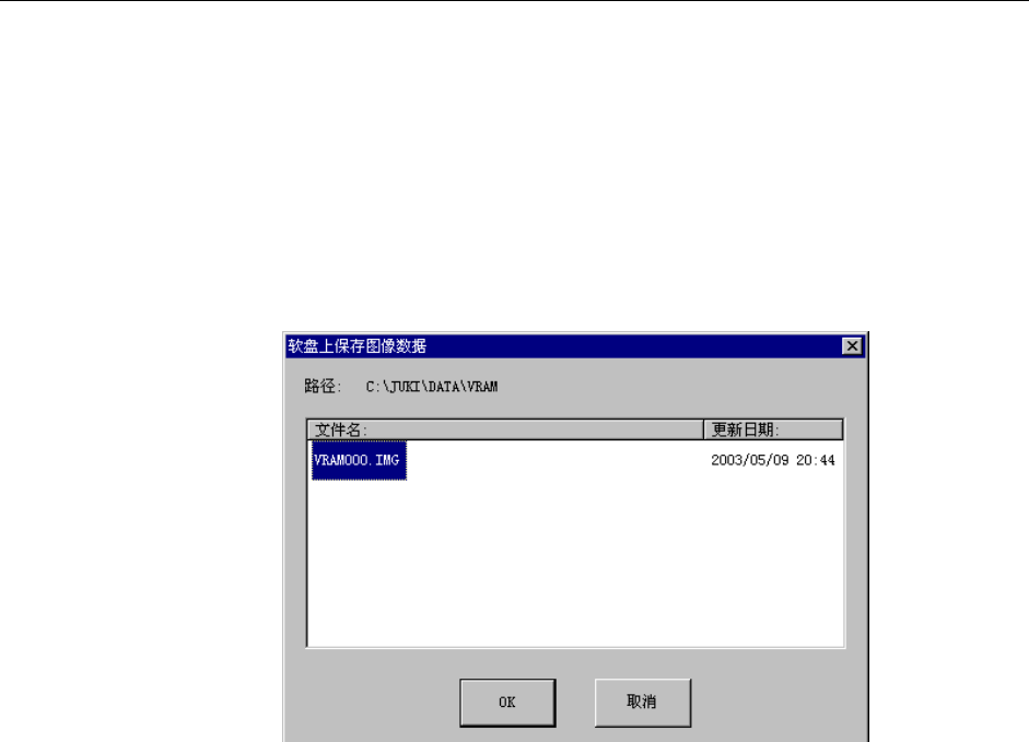第 1 部 基本编 第 1 章 设备概要 1-70 1-4-10 保存图像数据 FD 在生产中,可利用本项功能, 按Ctrl+F2键 ,把 显示错误信息的图像文件调出,或在图像读出 错误信息机器暂停时,通过对话框把显示错误的图像信息调出,保存在软盘里。 操作方法如下: (1) 把软盘插入软驱。 (2) 点击菜 单上的 “文件”,再点击下拉菜单 上的“保存图像数据FD”。画面上出现 对话框,问是否要“软盘上保存图像数据”。 (3) 按“O…
