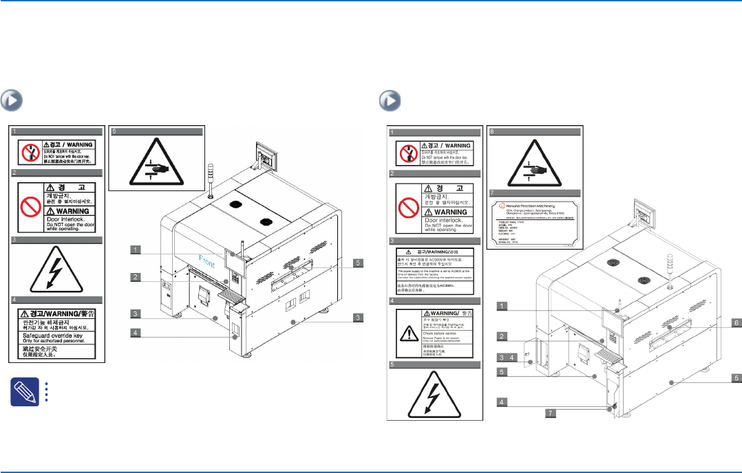为了安全地使用设备,在下列位置粘贴了安全提示标签。