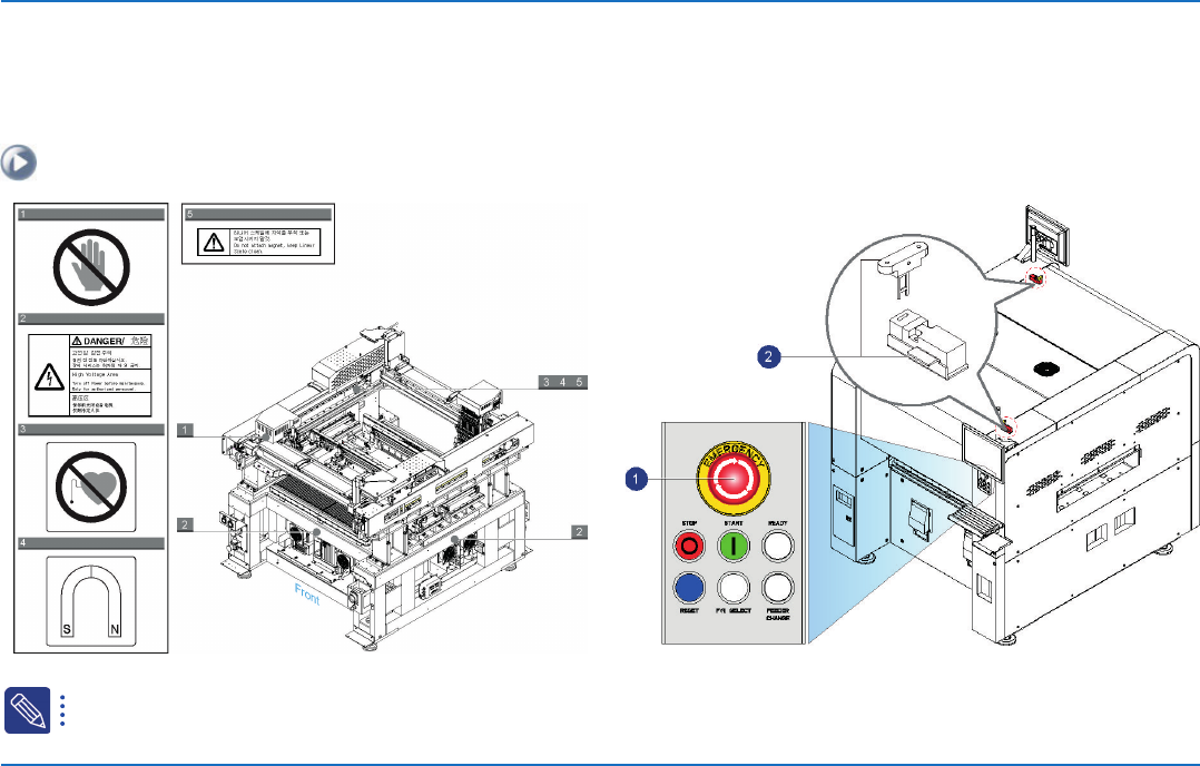 为了安全地使用设备,在下列位置粘贴了安全提示标签。