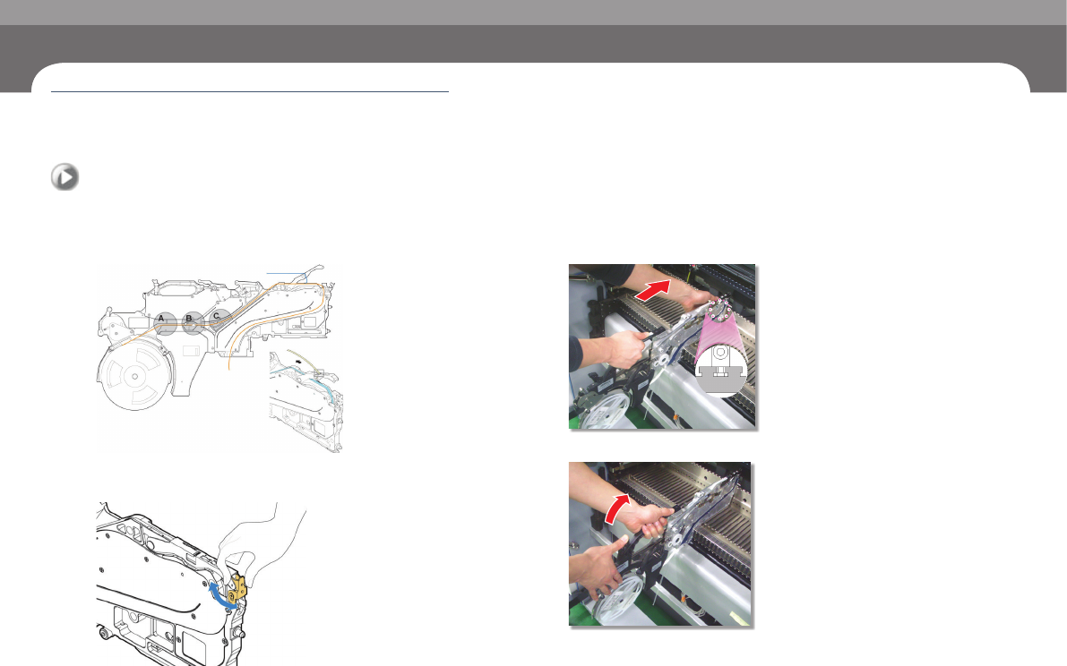 Step 5. 参考附图后进行料带的安装及排放作业。(以通过A与B的方式安装料带)