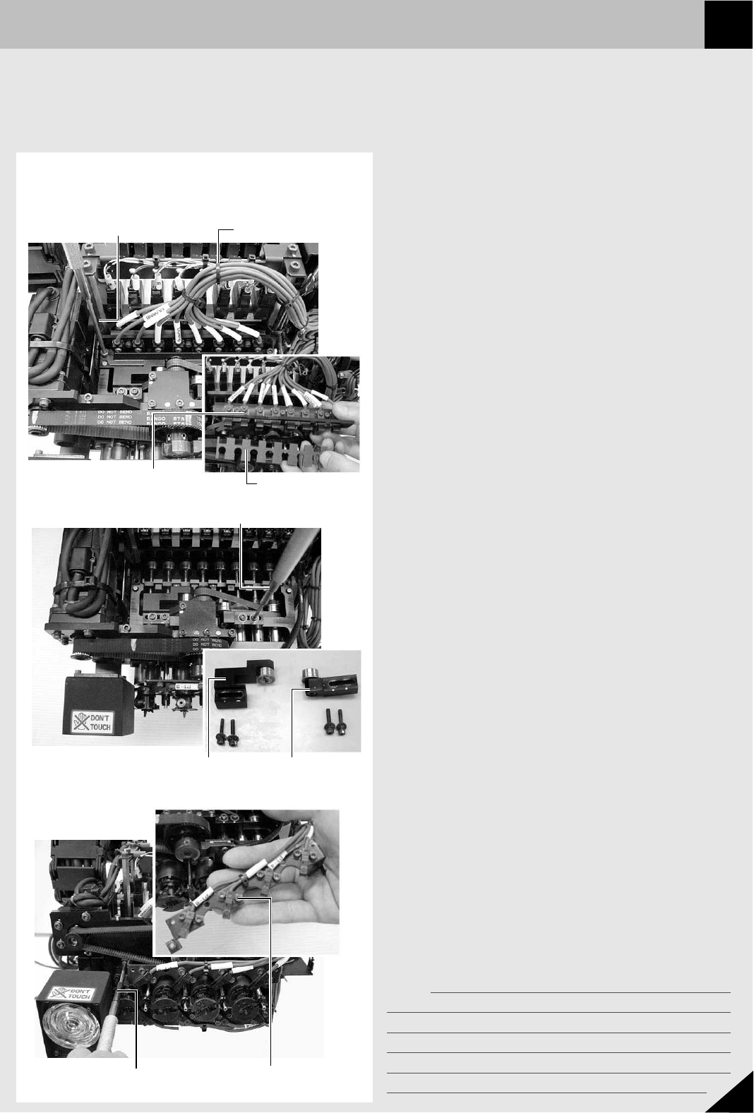 15 メモ 1 Section JMC9016121 5 . スプライン ASSY の 交 換 FNC ( フライングノズチェンジ) インデックスホルダーやノズルホルダーの先端部が折れたり、曲がってしまった場合 は、スプライン A S S Y 全体の交換が必要です。スプライン A S S Y の交換方法を下記に示します。 ■ 用意するもの ・ Tレンチセット (2.5, 3) ・ 六角レンチセット ・ ニッパー、結束バンド ・ 新しいス…