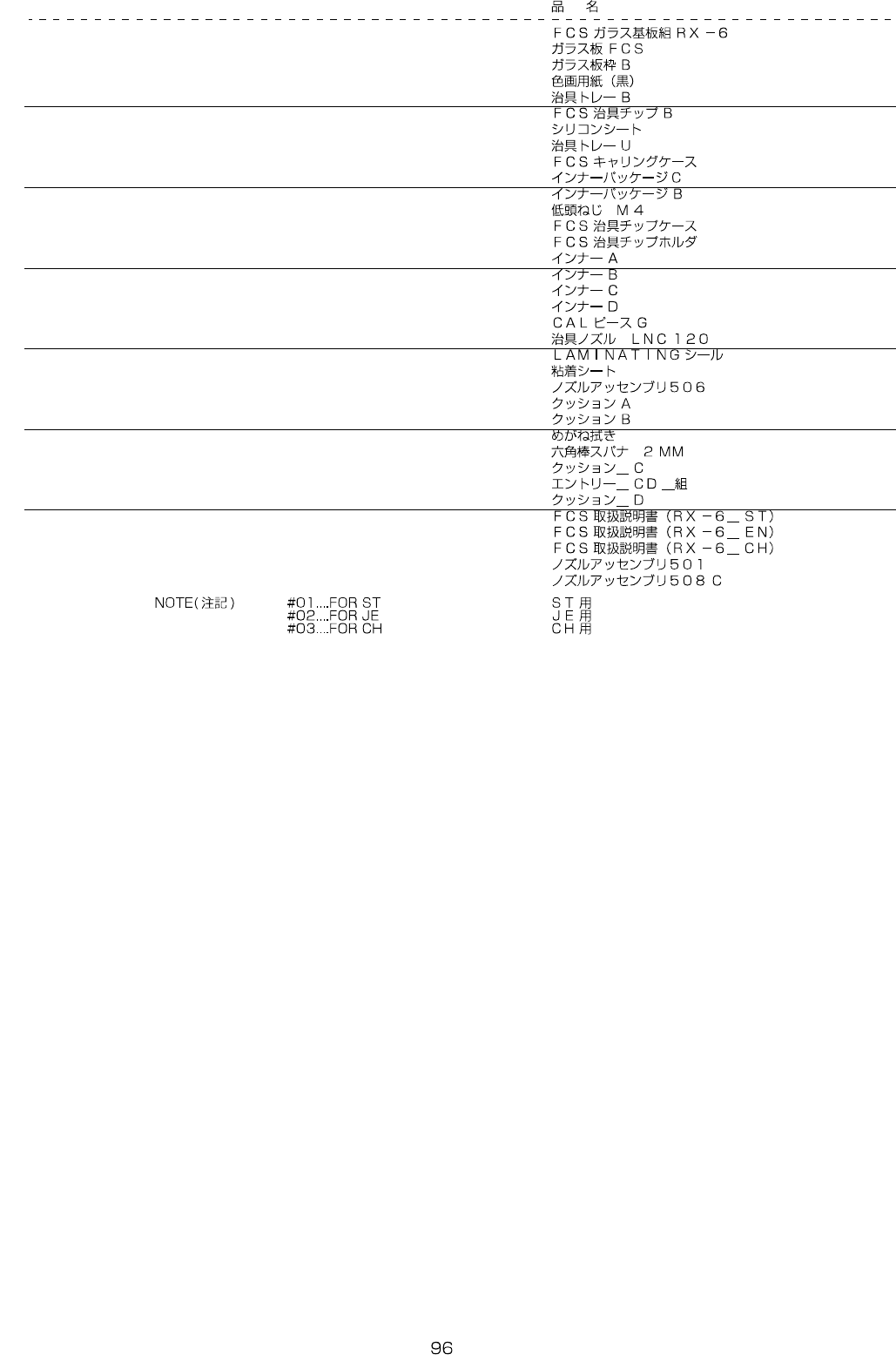 REF.NO NOTE PART NO D E S C R I P T I O N Qty