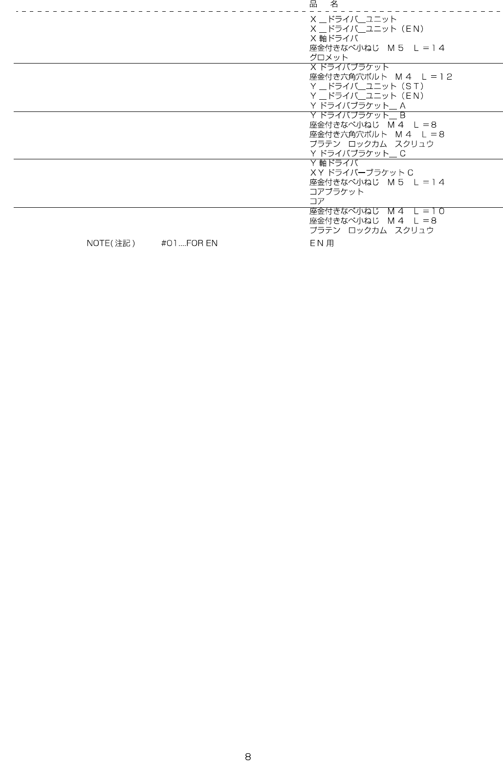 - - REF.NO NOTE P ART NO D E S C R I P T I O N Qt y 1 401-2 7539 X_D RIVER_UNIT 1 2 #01 401-275 64 X_DRIVE R_UNIT (EN) 1 3 401-2 9652 X AXIS DRIVER (2) 4 SL-405 1491 -SC SCRE W M5 L= 14 (6) 5 HX -0066900-00 GROM ME T …