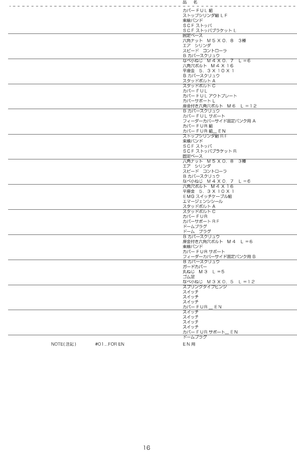 REF.NO NOTE PART NO D E S C R I P T I O N Qty