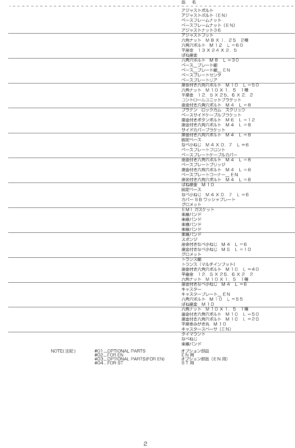REF.NO NOTE PART NO D E S C R I P T I O N Qty