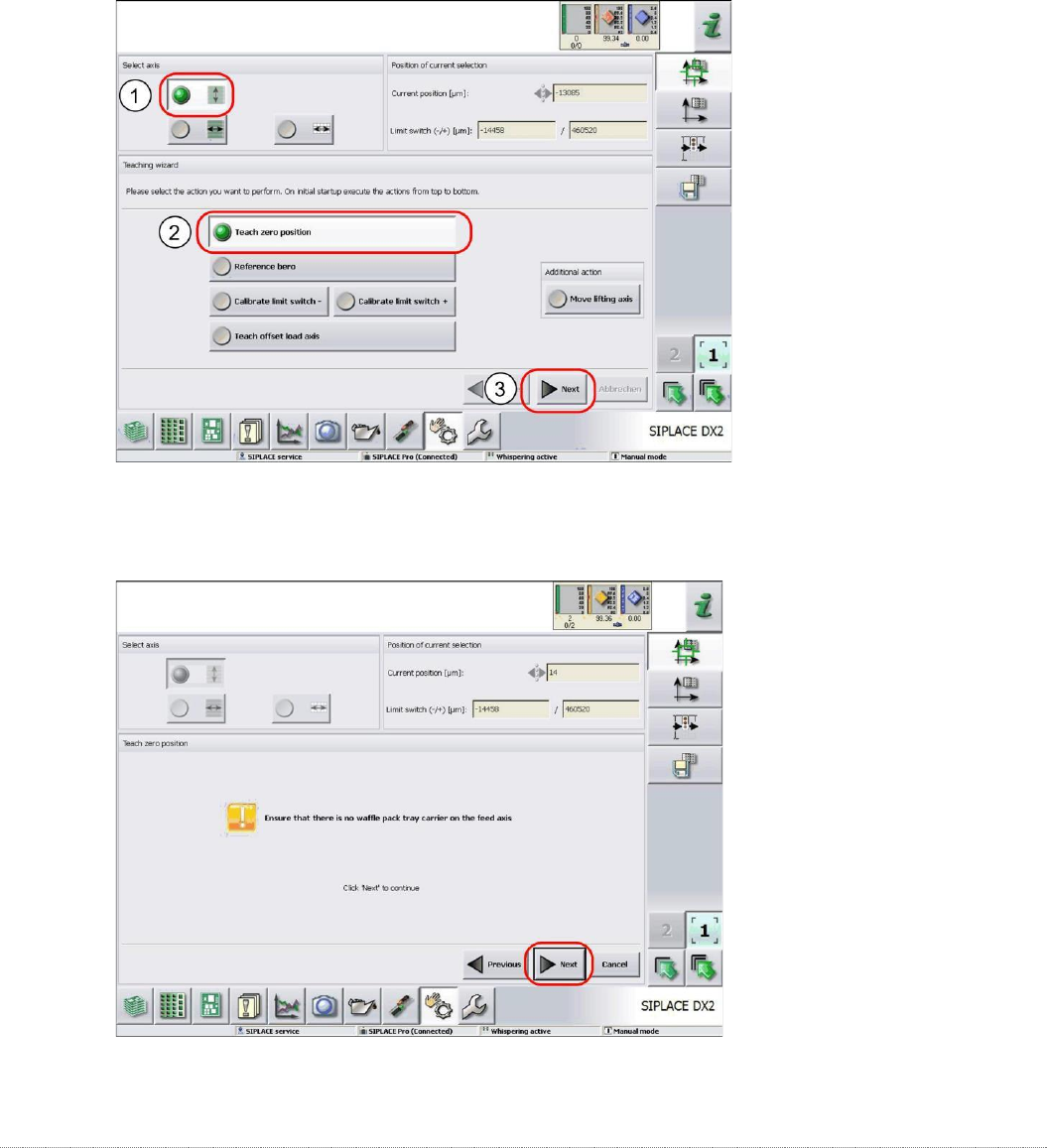 此校准步骤确定提升轴的位置,以便将华夫饼托盘托架正确地移出塔(没有障碍物)。