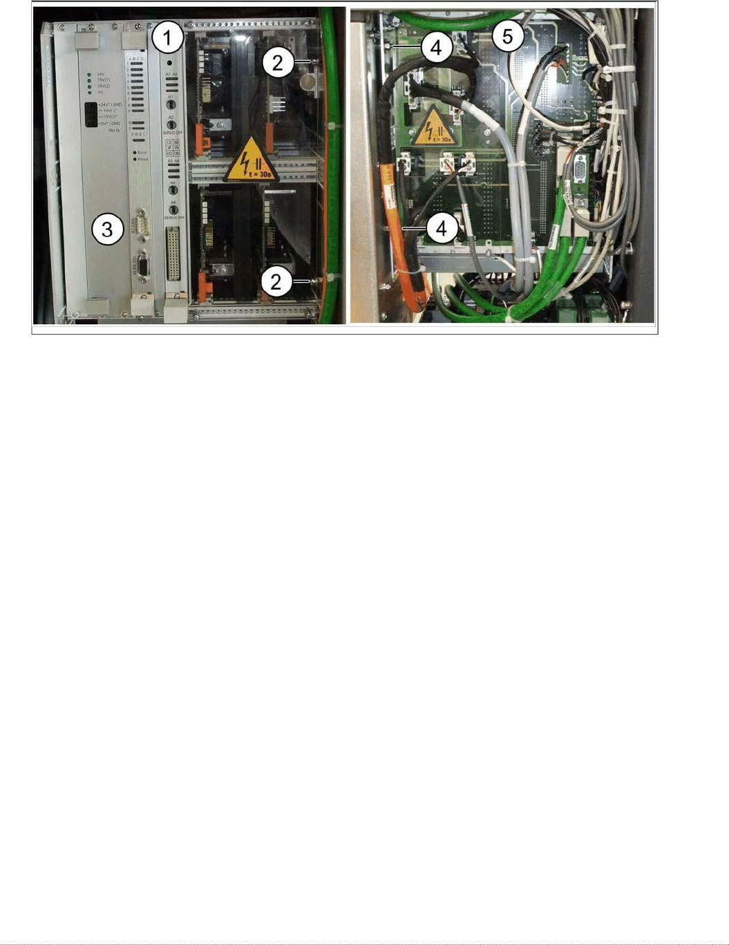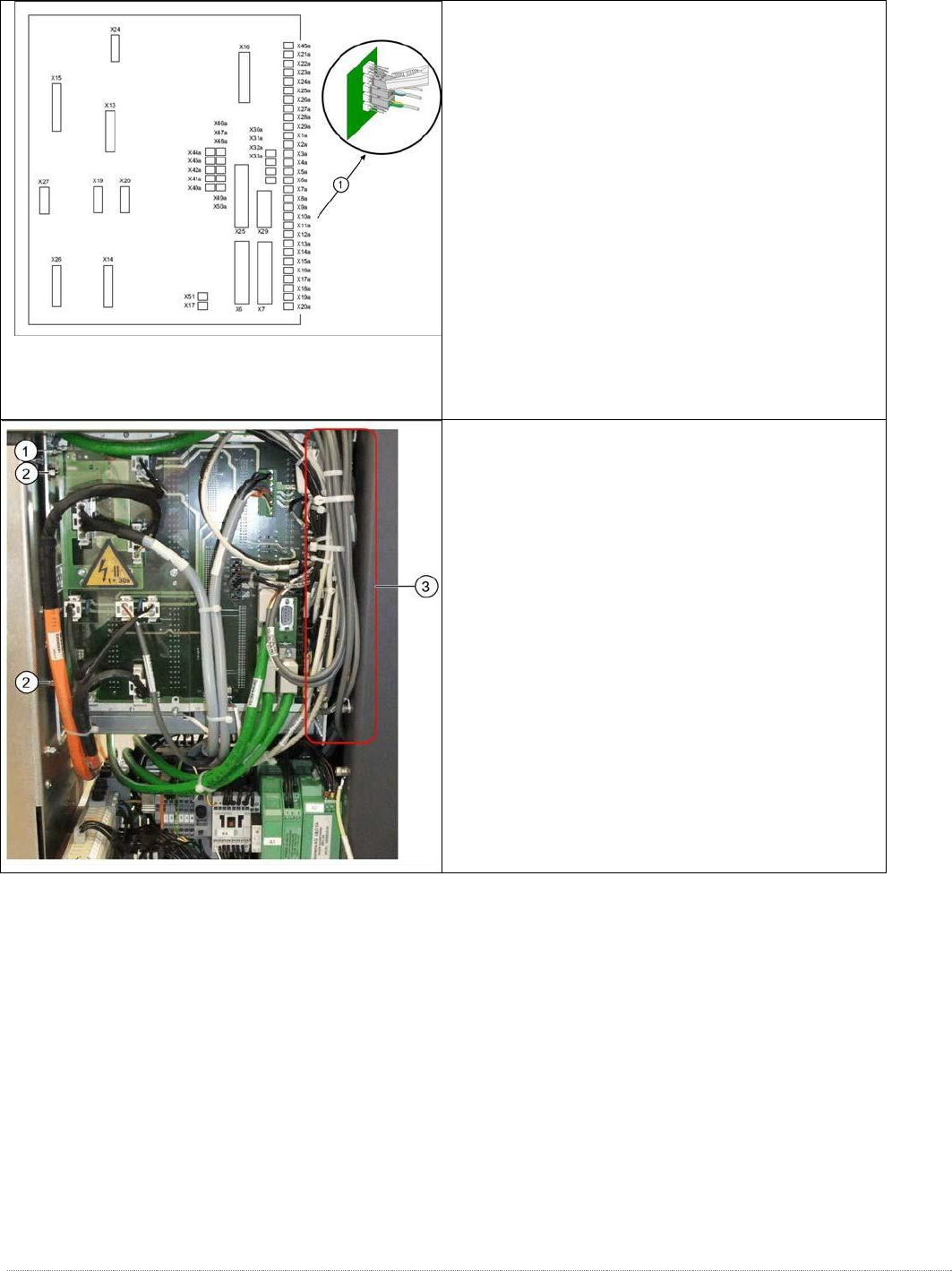 维修手册 WPC5 / WPC6 第 3 页 - 55 控制单元背板 - 细节 1. 限位开关、传感器和光栅的连接 。 有关连接的详细概述,请参阅 “ 3. 7.1.3 限位开关、 传感器和光栅的详细连接 ” [ ➙ 3 -71] 。 使用合适的钳子(例如组合钳) ( 1) 小心地拔下 端子排(接近开关、传感器等)上的 接头 X1A 至 X20A 。确保不要弯曲触针。 拔下剩余的电缆、插头和连接。 控制单元背面 —— 例如 …