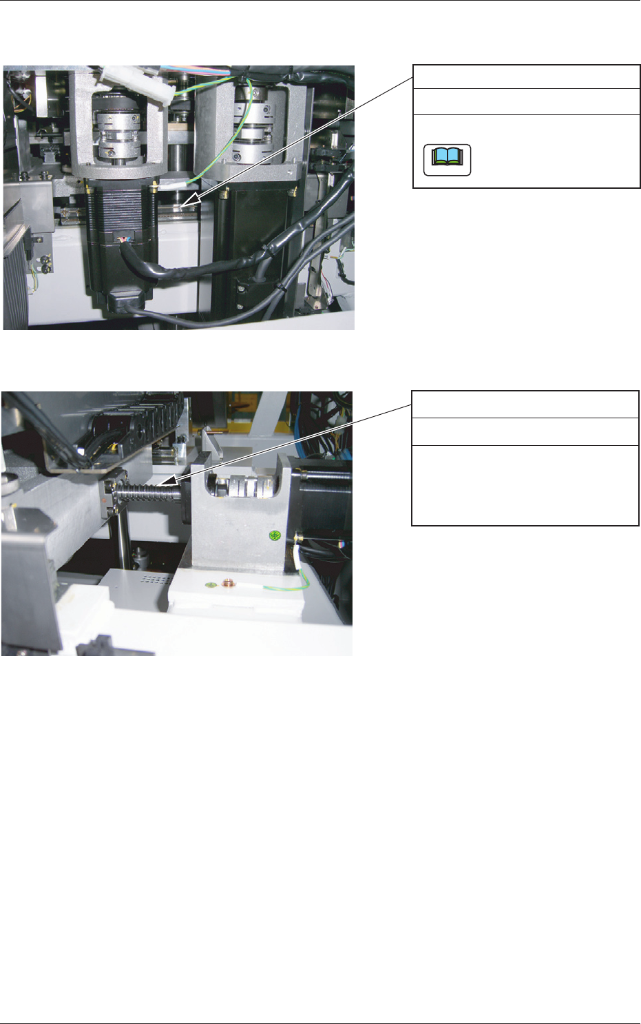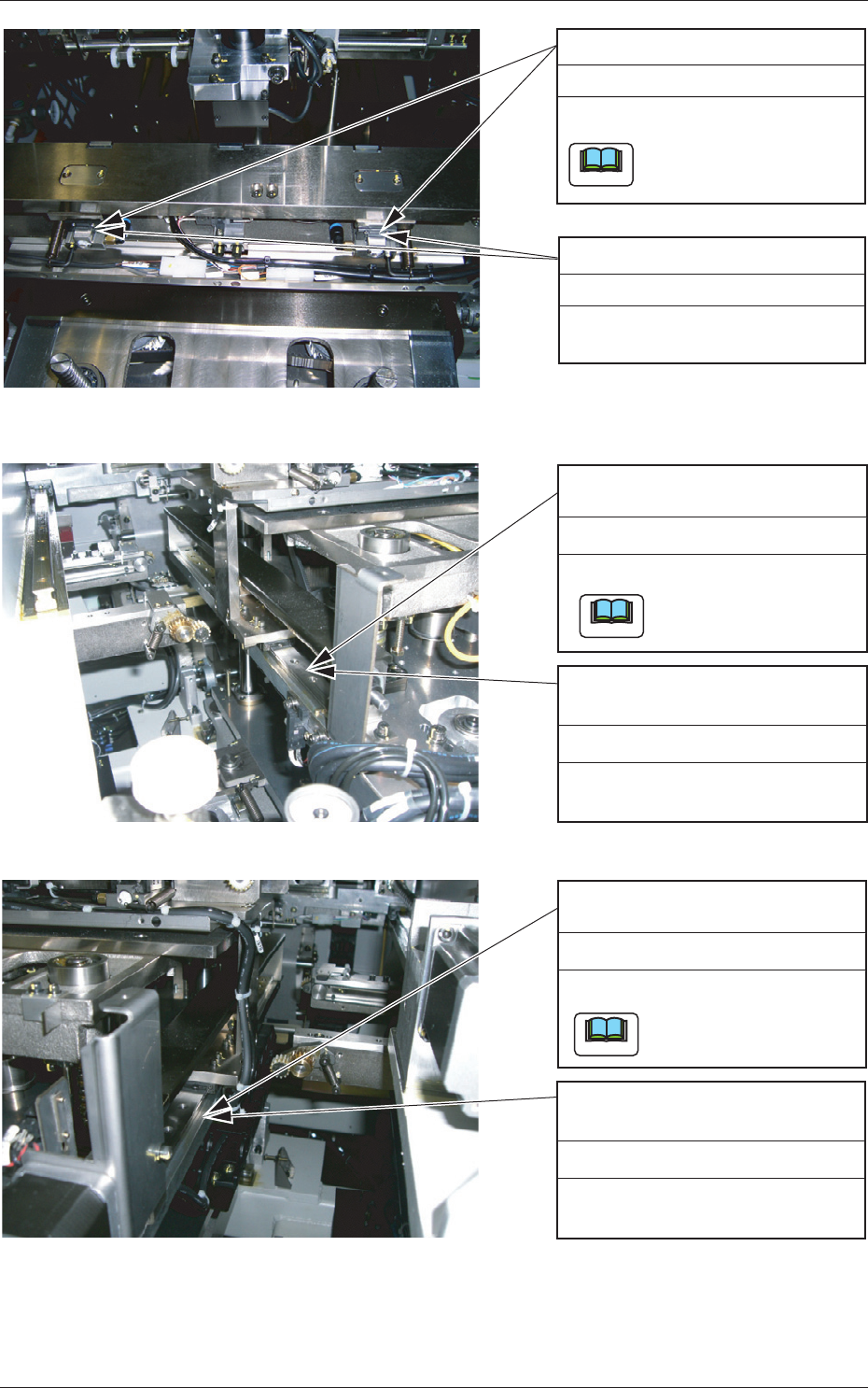 1 - 29 请用油棉纱清扫。 每月 清扫 工作台X轴直线导轨 请注意不要残留纱头。 0 70 3 - 00 1 3.3 点检、清扫、注油部位 3.3.7 工作台部 Fig.4A27 Fig.4A28 Note 工作台X轴滚珠丝杠 (1) 将工作台Z轴上升到印刷位 置。 (2) 拆卸工作台前侧的机盖。 (3) 用刷子或刮刀涂刷润滑油。 每六个月 注油
