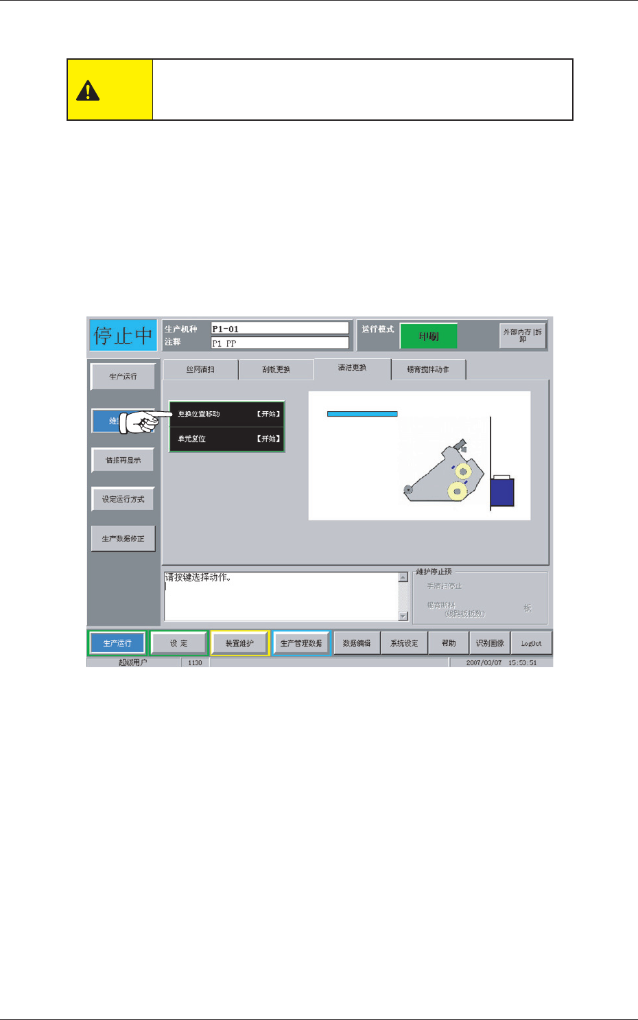 按“生产运行”子菜单栏的 [ 维护更换 ] 按钮,便显示以下界面。