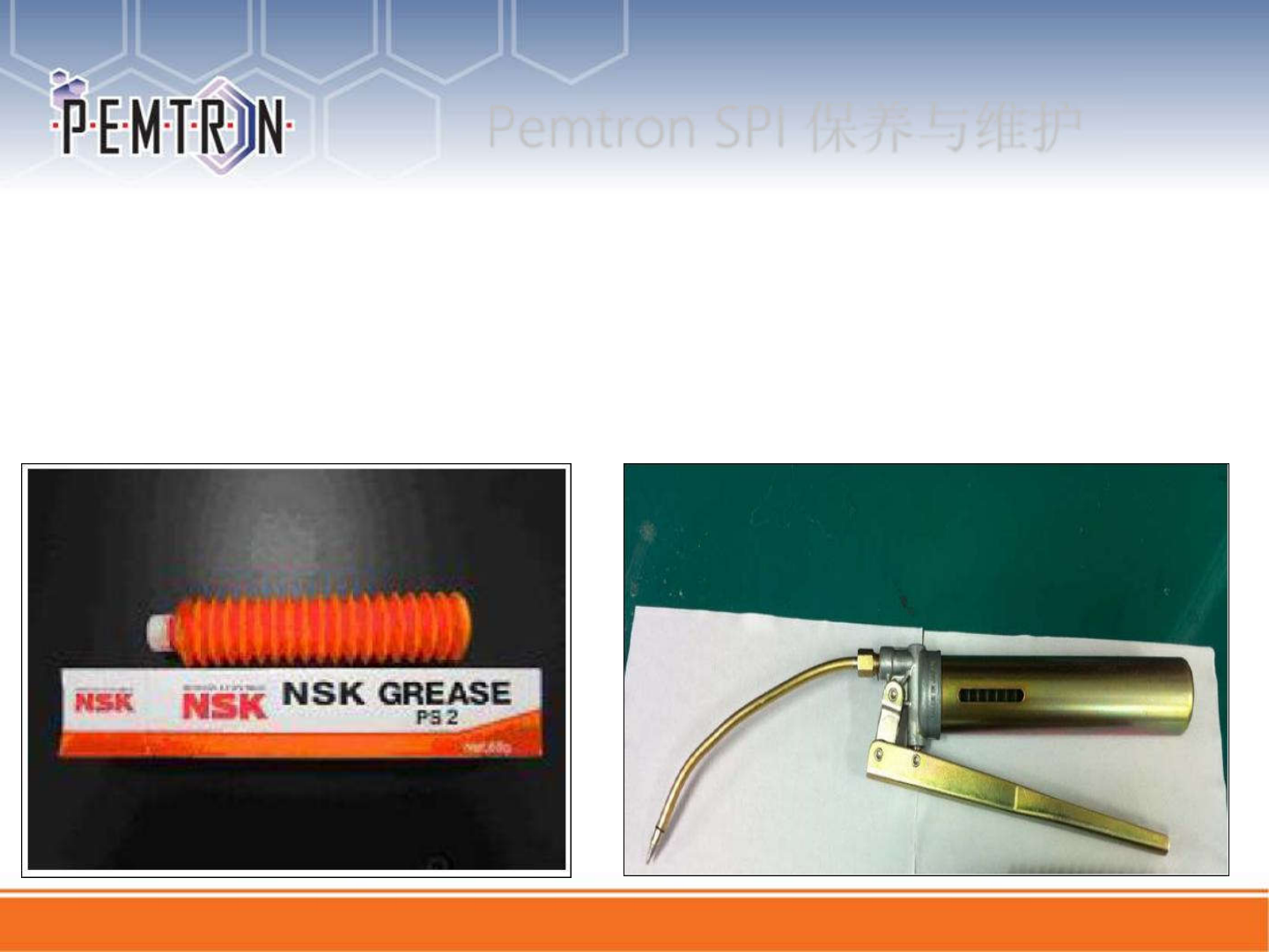 Pe mtron S PI 保养与维护 Ø 常用工具 为了不损害机器单元和延 长机器单元寿命,当维护球形丝杆和线性导轨时 使用 TROI 指定的相关油脂及油脂泵。 指定的油脂 油脂泵