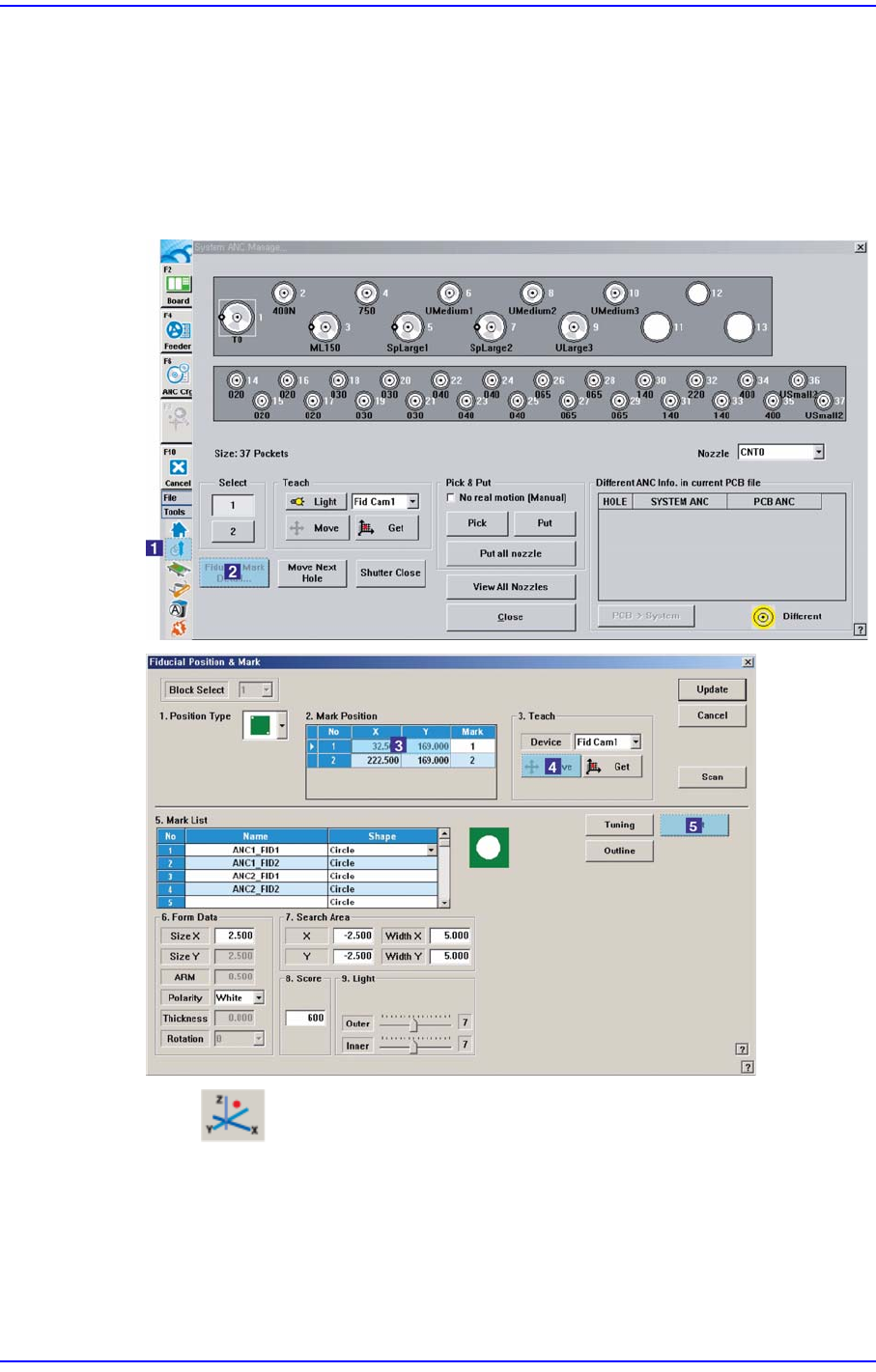 ANC 대화상자에서 ‘Fiducial Mark Detail …’을 클릭 한 후 Fiducial Mark 위치로
