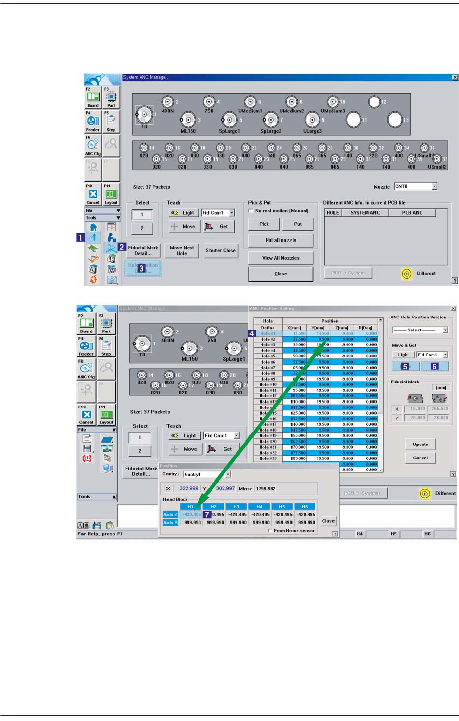 1-108 Samsung Componen t Placer SM471 Troubleshooting Gui de 치로 이동하여 홀의 중심이 설정된 위치와 같은지 확인하십시오 . 또한 , T eaching Box 를 이용하여 수동으로 Z 축을 하강시켜서 설정 된 ANC 홀의 좌표의 Z 값이 정 확한지 확인하십시오 . ANC 대화상자에서 <Shutter On/Off> 버튼을 클릭하여 …
