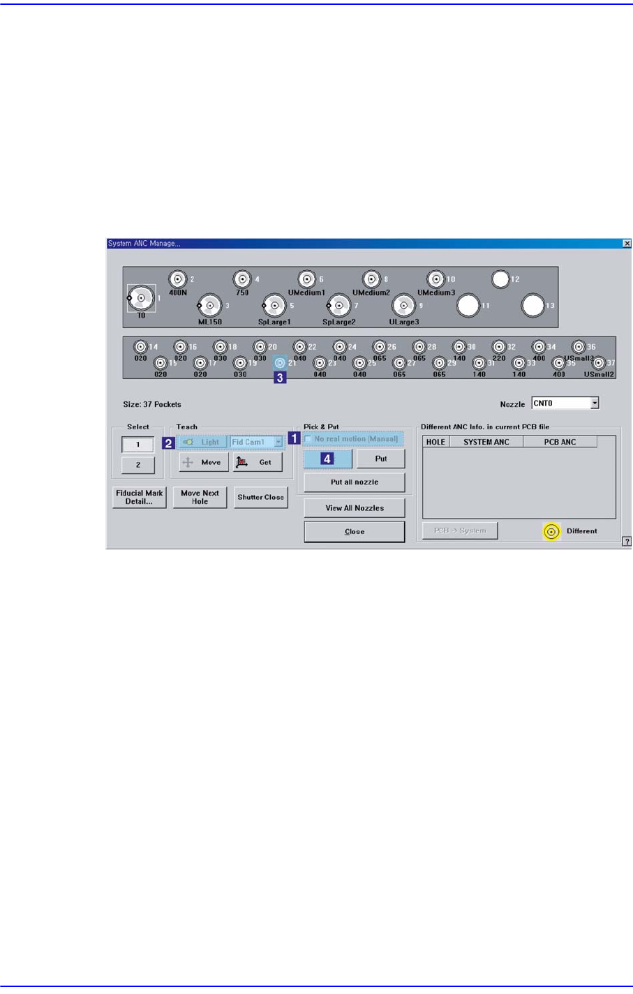 노즐 GET 동작 후 ANC 홀의 중심이 맞지 않거나 부적절한 높이 설정 등으로 실