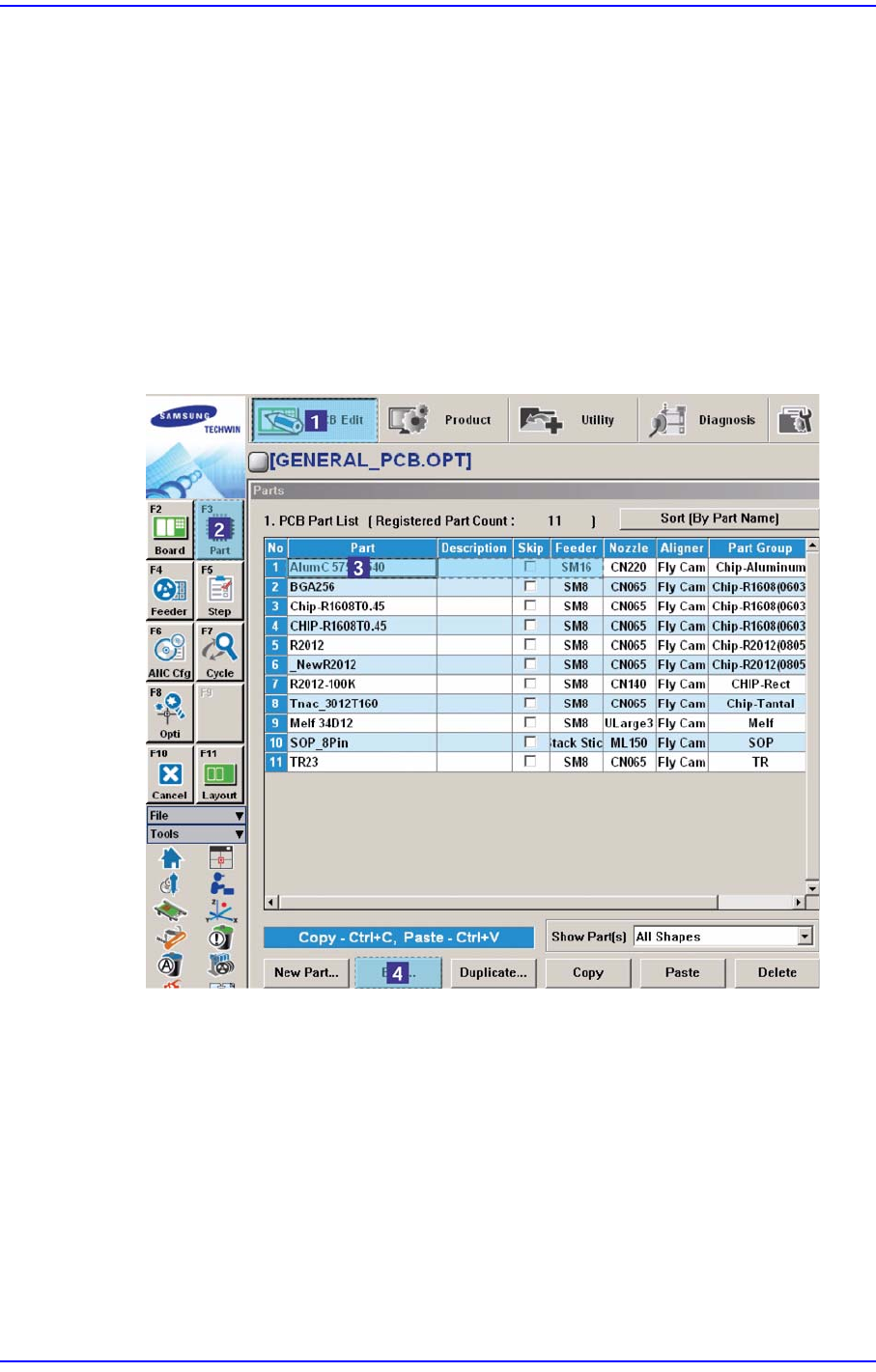 PCB Edit 메뉴의 Part에서 에러가 발생된 부품을 선택한 후, <Edit> 버튼을 클릭
