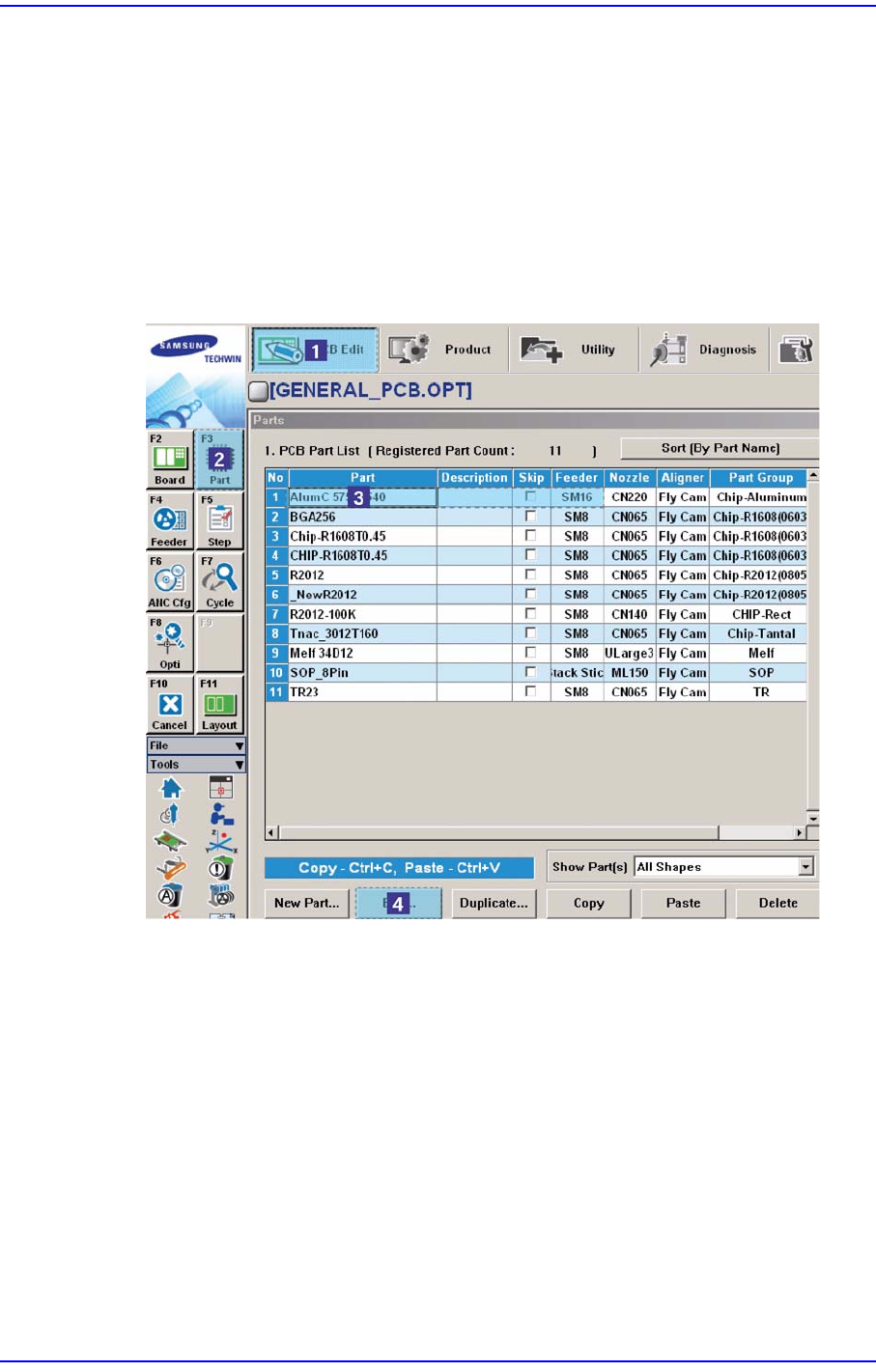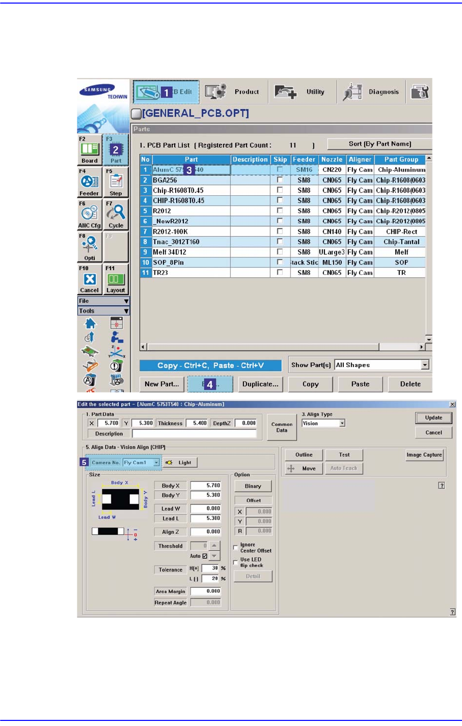 PCB Edit 메뉴의 Part에서 해당 부품의 ‘Camera No.’ 가 제대로 설정되어 있는지