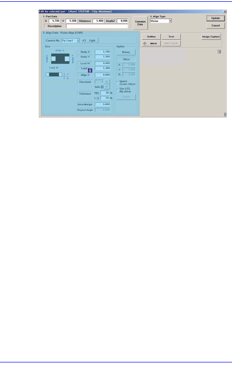 당 Fiducial Mark의 설정 관련 데이터를 확인하고 수정합니다 . 자세한 사항은
