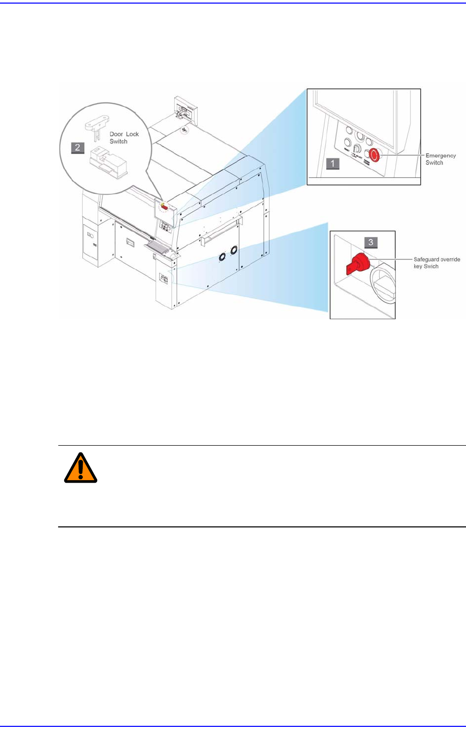 위 험 Safeguard override 키 스위치의 사용은 반드시 지정된 관리 책