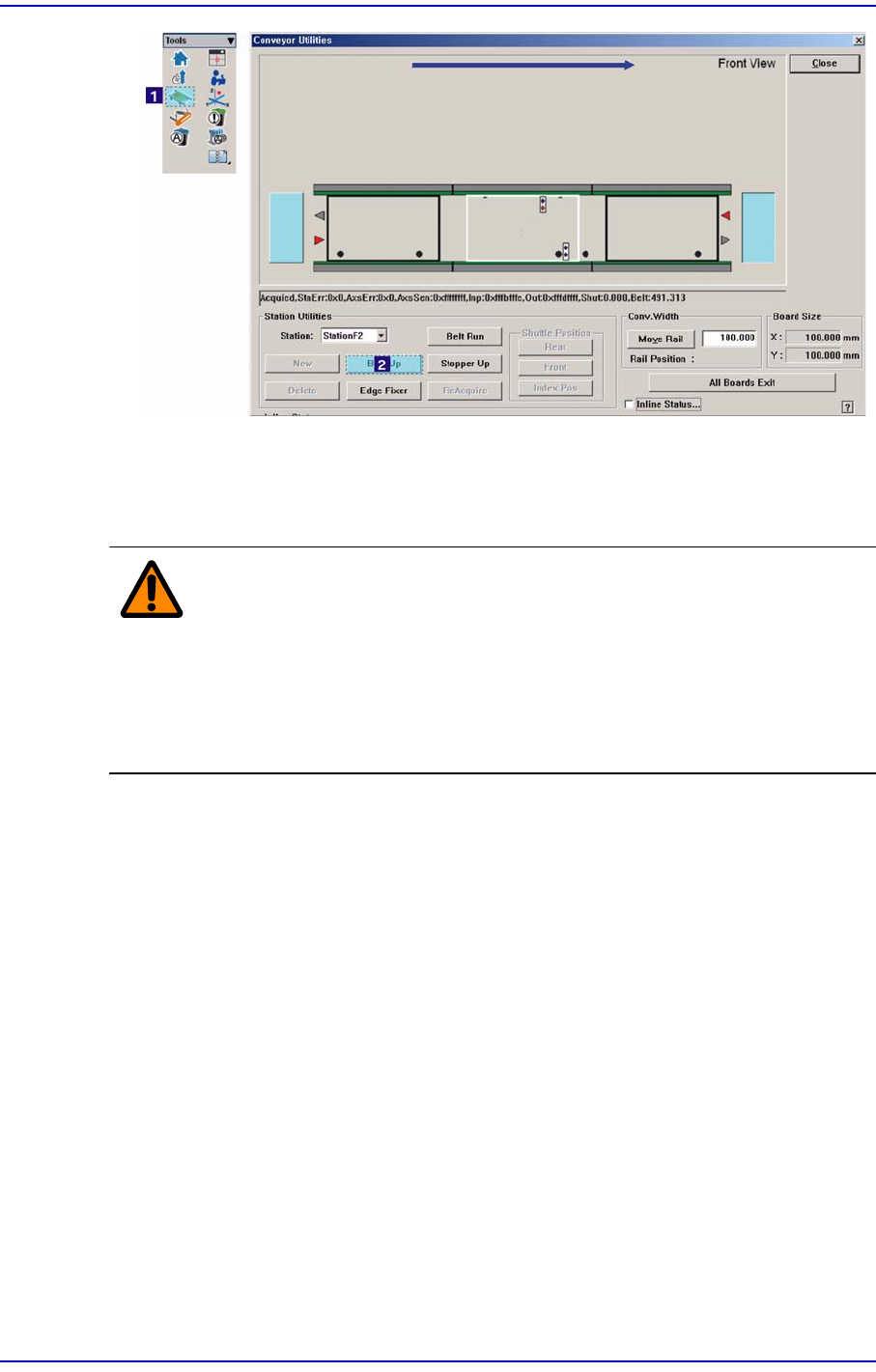 컨베이어 폭 조절을 하려고 할 때 컨베이어 상의 PCB 가 있을 경우.