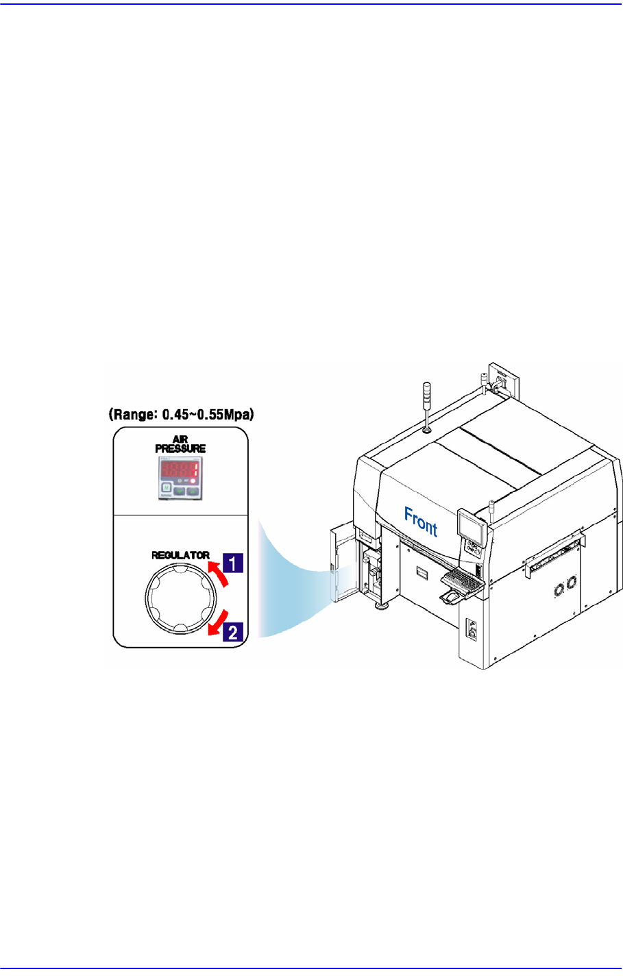 전면의 공압 게이지(Air Pressure)에서 공압이 정상적(0.45-0.55Mpa)으로 공급되