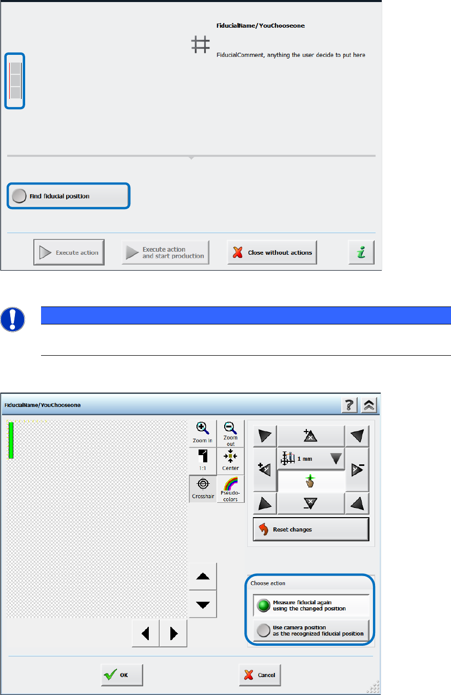 The new position can either be used as starting point for a new measurement (Measure fiducial